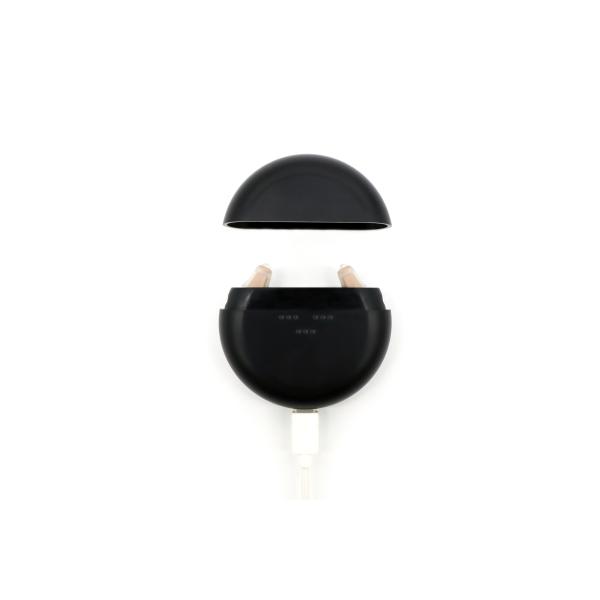 State of the Art Design - Blue device for left ear, red device for right ear, pure white magnetic charging base. Nice appearance and easy to tell the two devices' direction. Obvious On/Off button for easy operation.